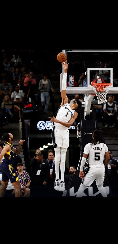 Game Flow: The San Antonio Spurs moved to 4-0 with a very efficient night from their superstar V. Wembanyama. Wemby shot 7-8 from the field and 10-10 from the free throw line contributing to the win with 24 points, 15 rebounds and 1 block. The 1 block kept the NBA streak alive with 89 consecutive games with a block. Other Spurs such as S. Castle maintained his aggressive play with 22 points, 5 rebounds and 4 assists. H. Barnes had 18 points and 5 assists to also helped keep the raptors extinct! D. Harper chipped in with 11 points, 6 rebounds and 6 assists as well as D. Vassell with 15 points and 5 assists to help carry the Spurs to victory.